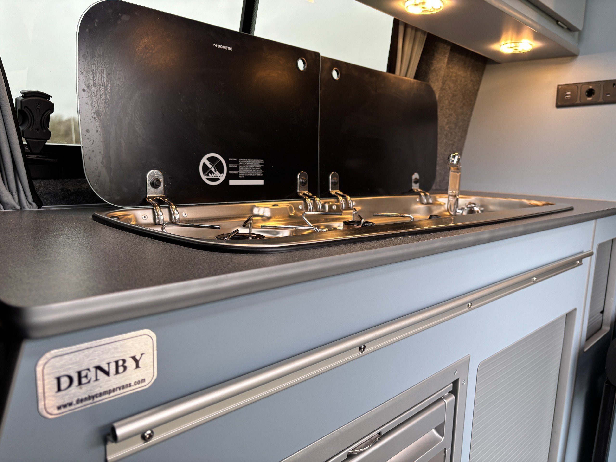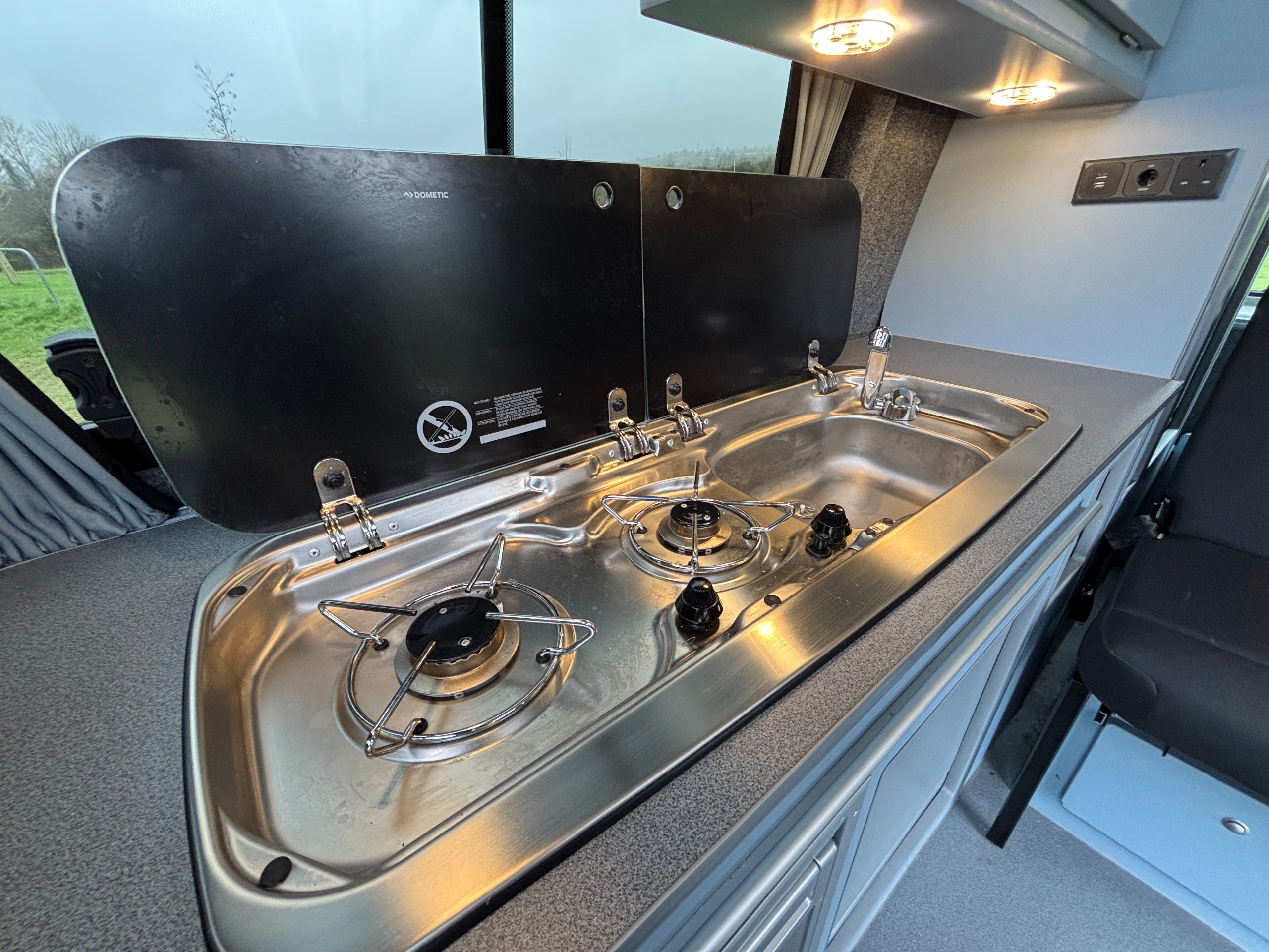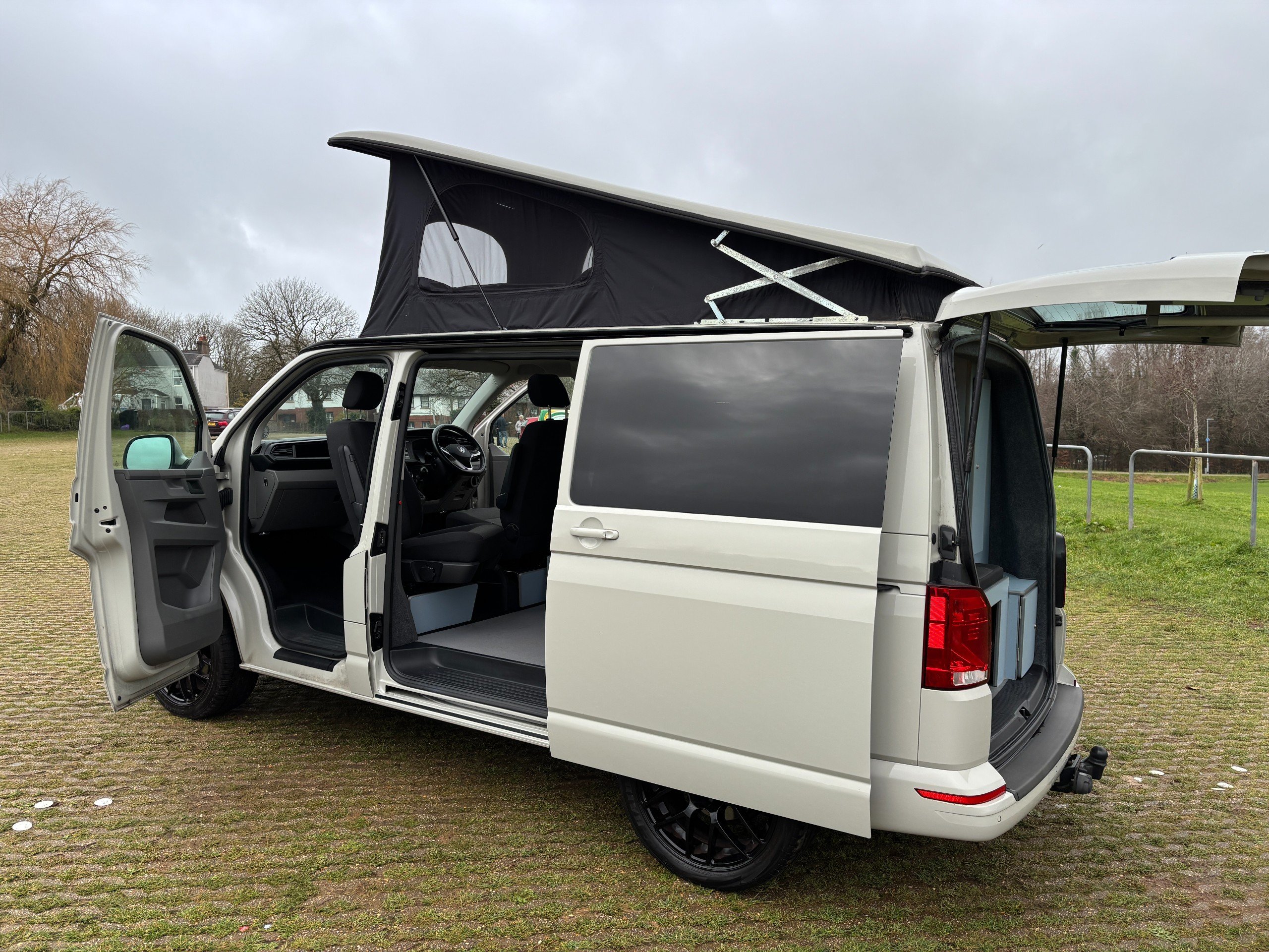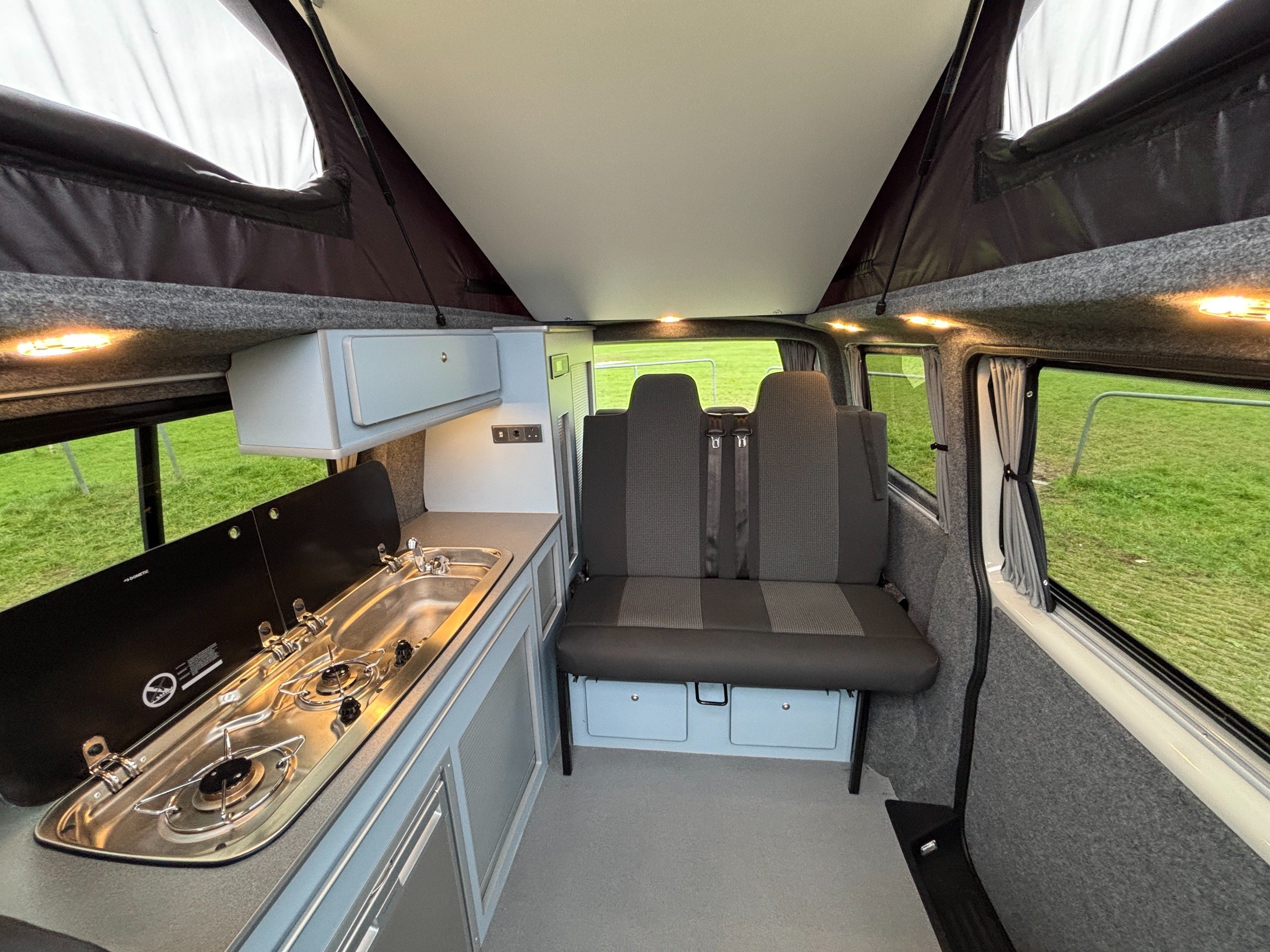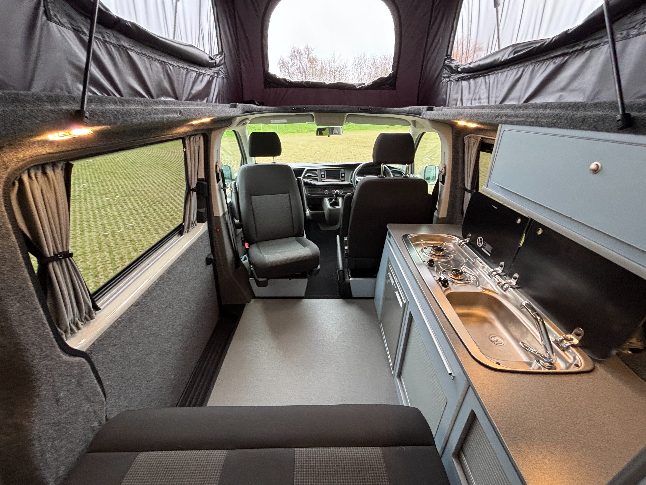Professionally converted by Denby campervans, this is the popular Balmoral conversion. A fully converted campervan with a pop top roof. Sleeping 4, with 4 Traveling seats.