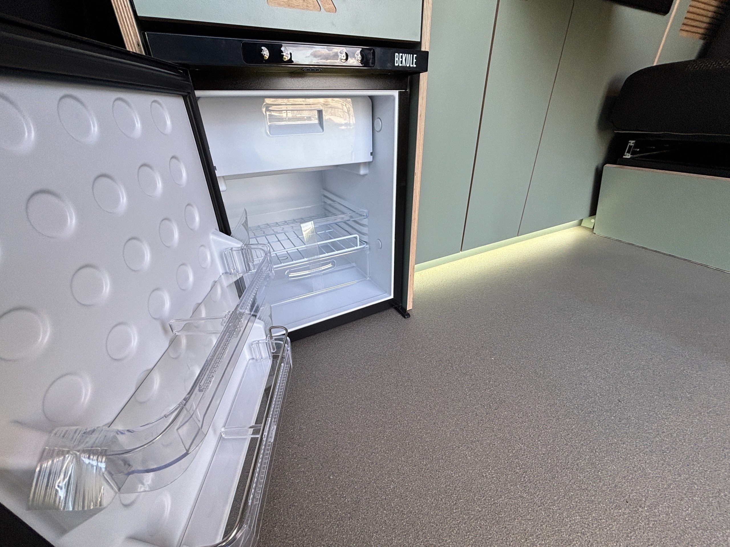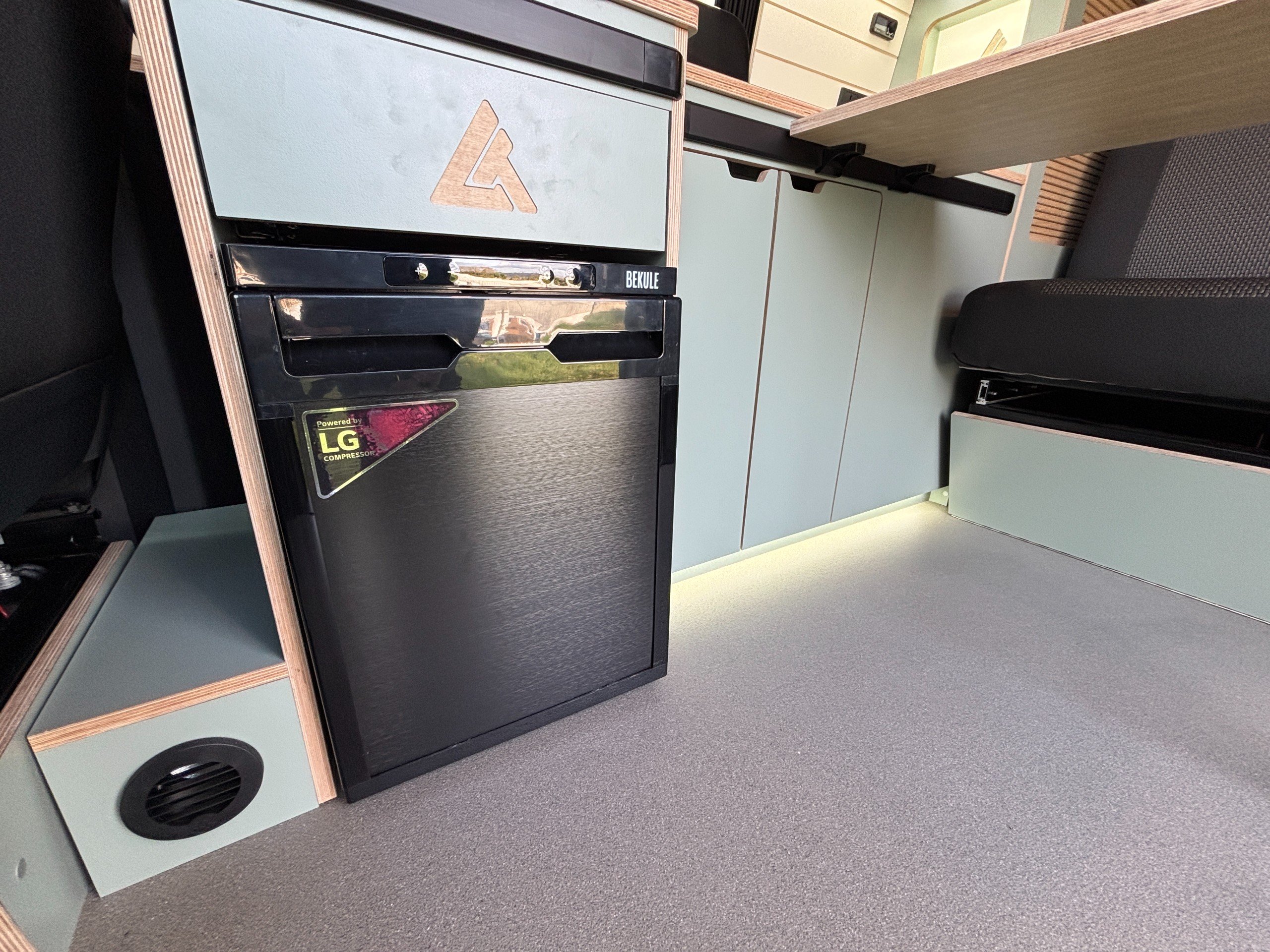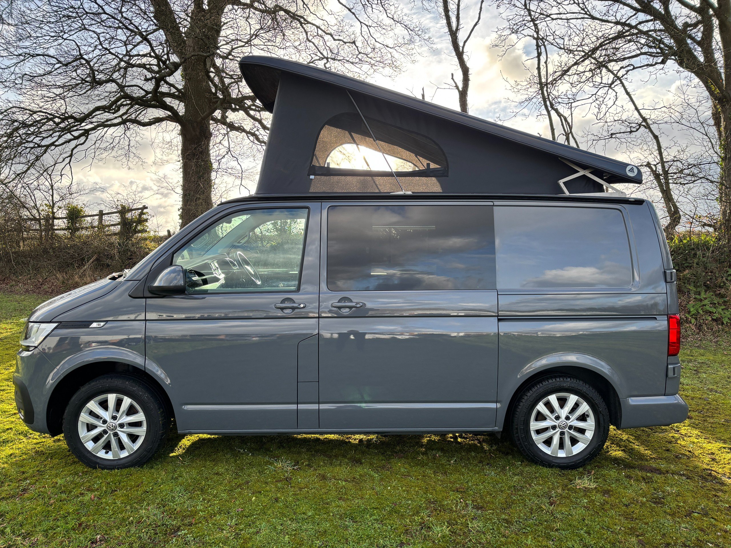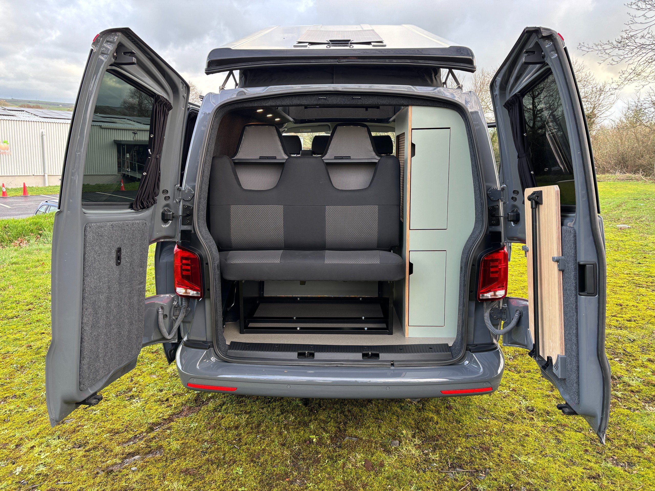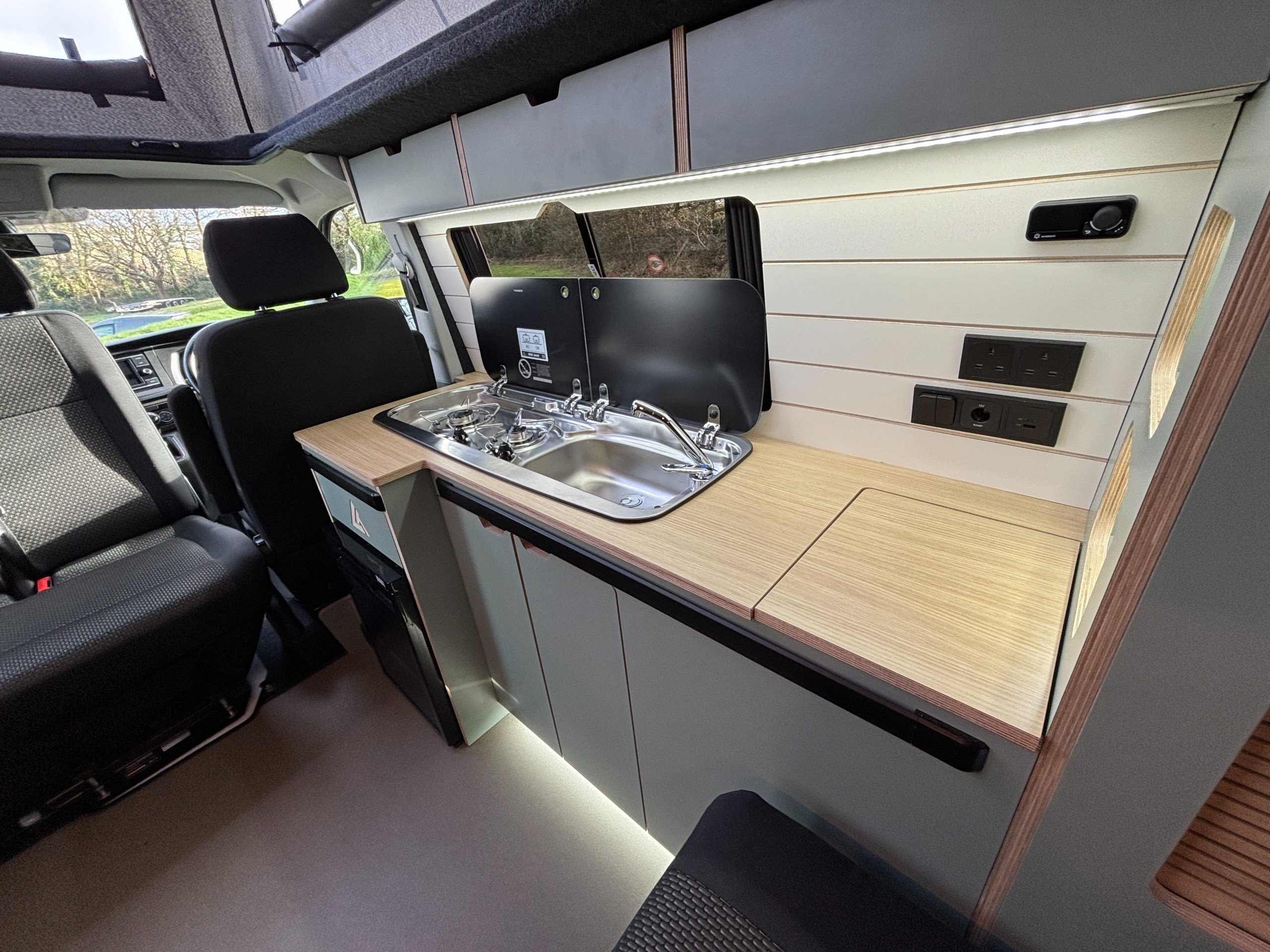 The popular side kitchen conversion features a 2 Burner Hob, Fridge Freezer, along with a quality rock and roll bed, that effortlessly converts into a comfortable double, with additional sleeping above in the elevating roof. Heating is provided by a reliable Autoterm diesel heater.
