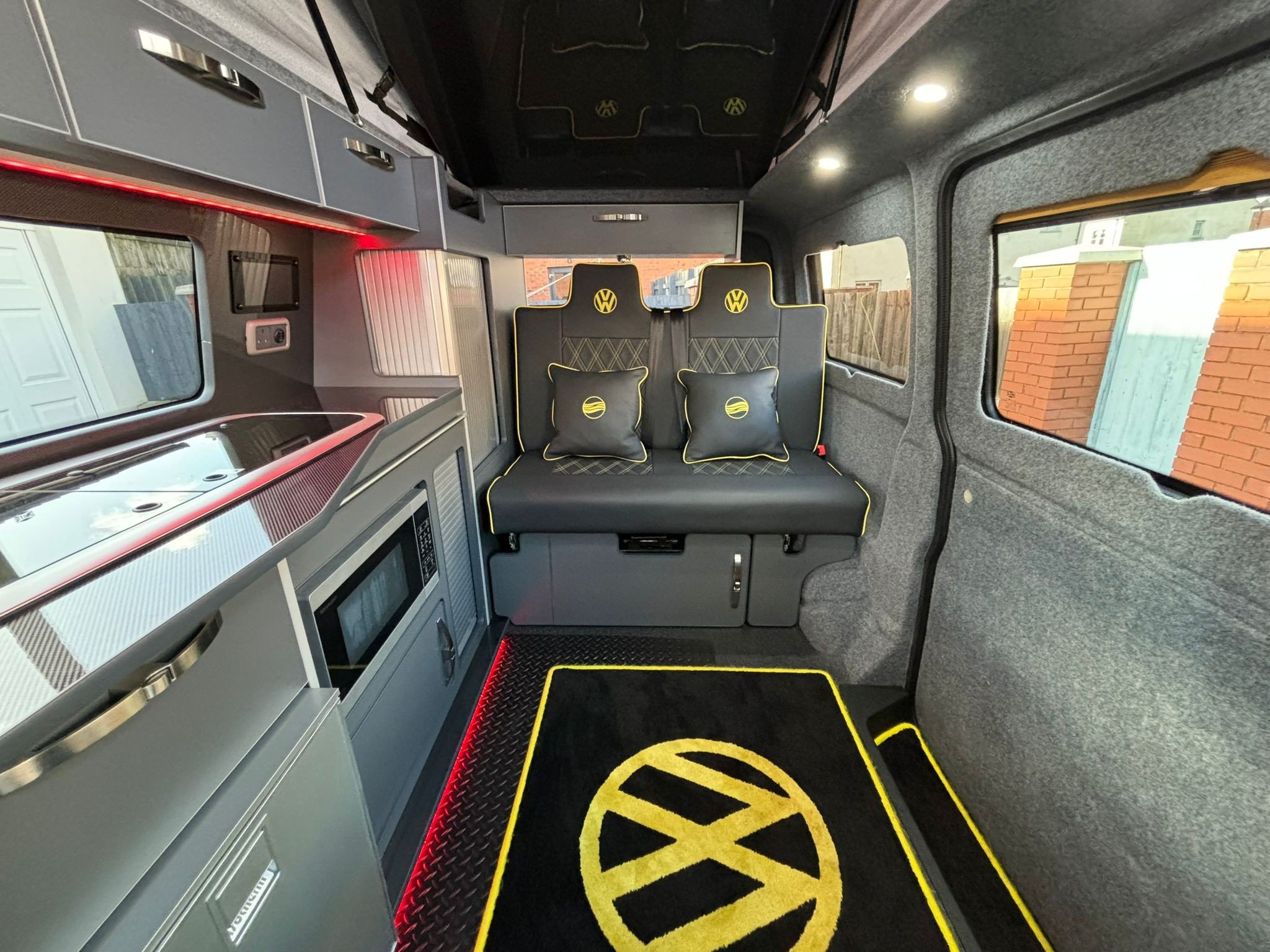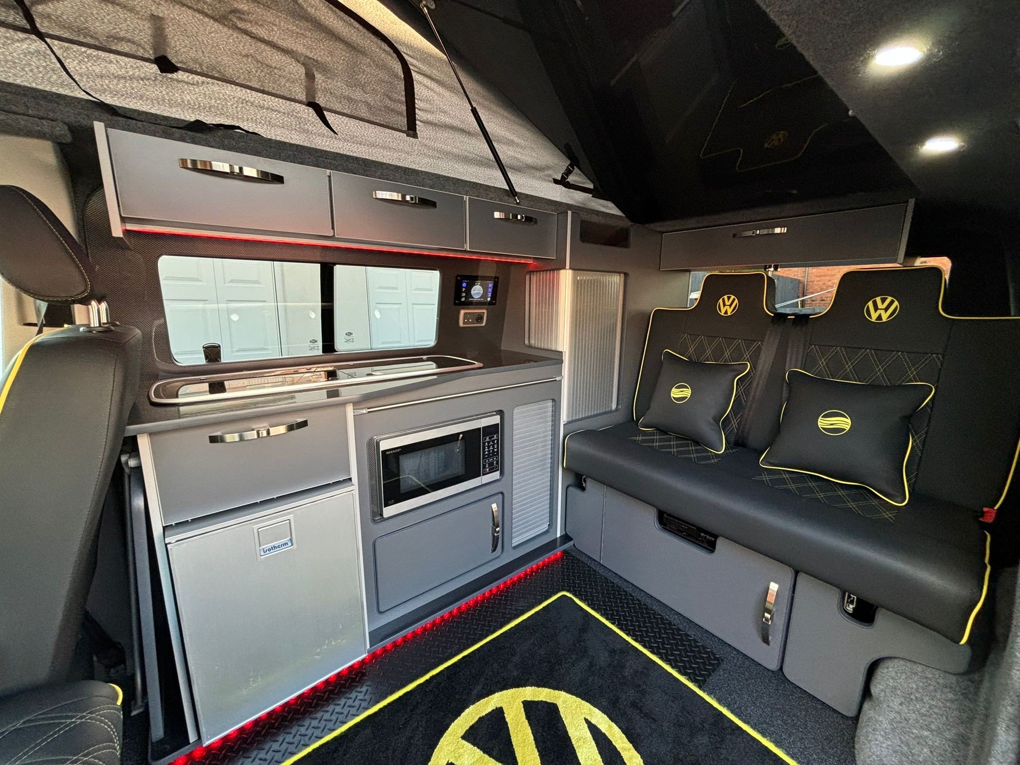 The popular side kitchen conversion features a 2-Burner Hob, Fridge Freezer, Microwave, along with a quality rock n roll bed, this effortlessly converts into a comfortable double, with additional sleeping above in the elevating roof fitted.